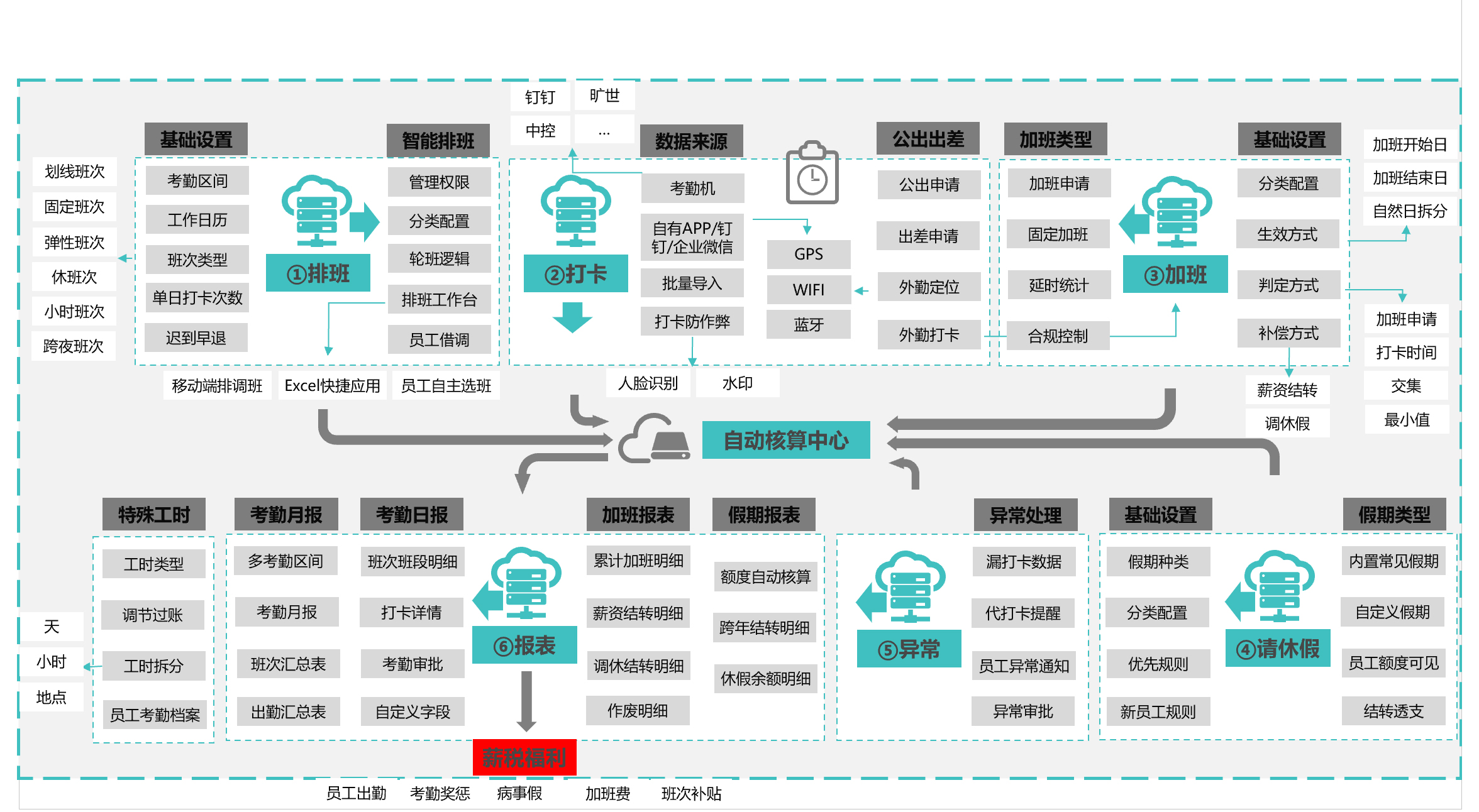 全场景、一站式考勤排班数据直通薪酬、绩效
